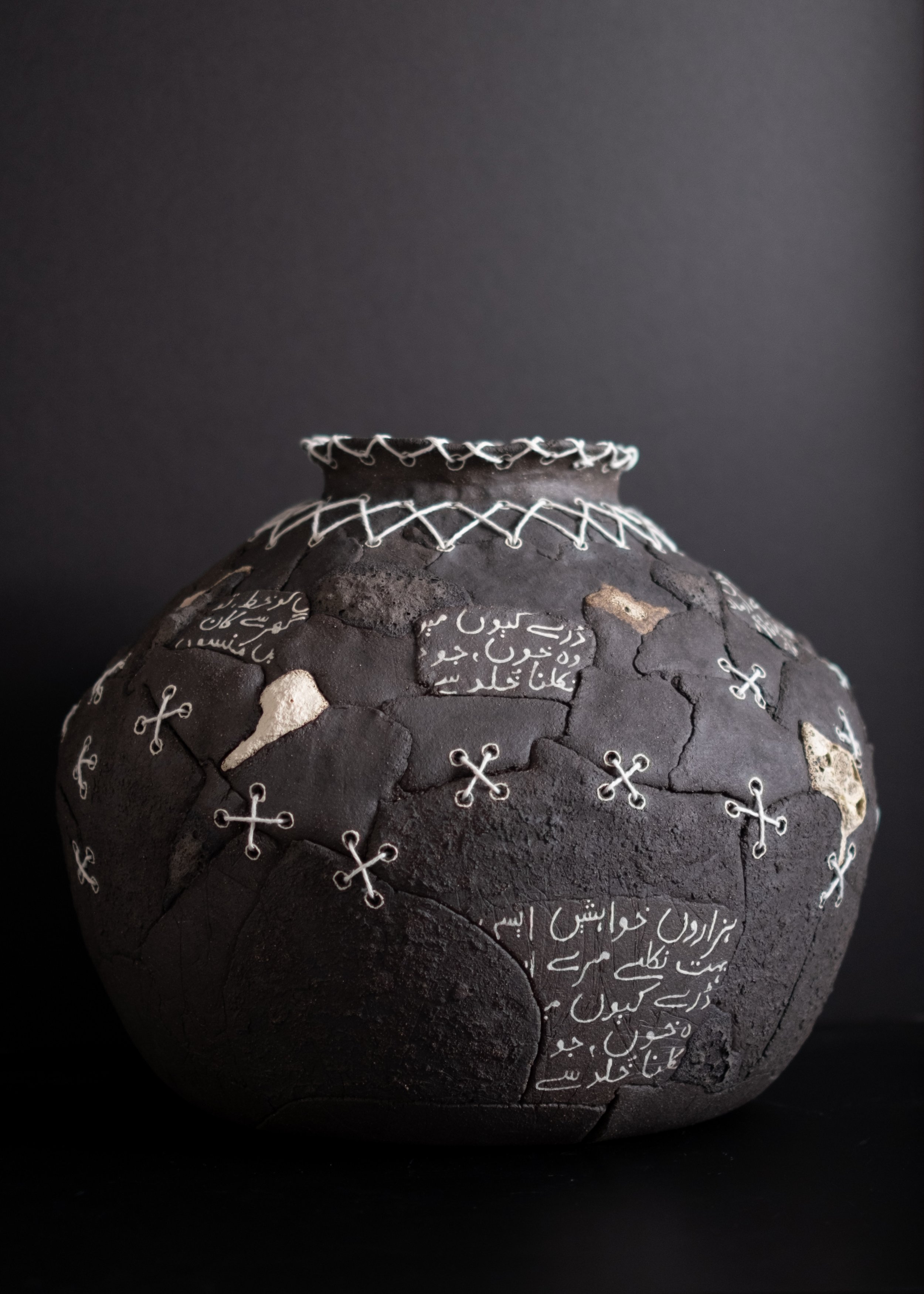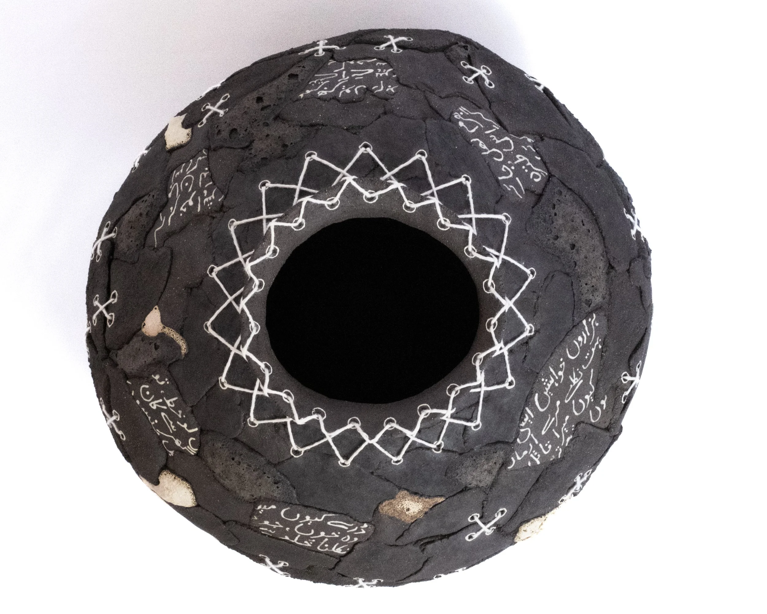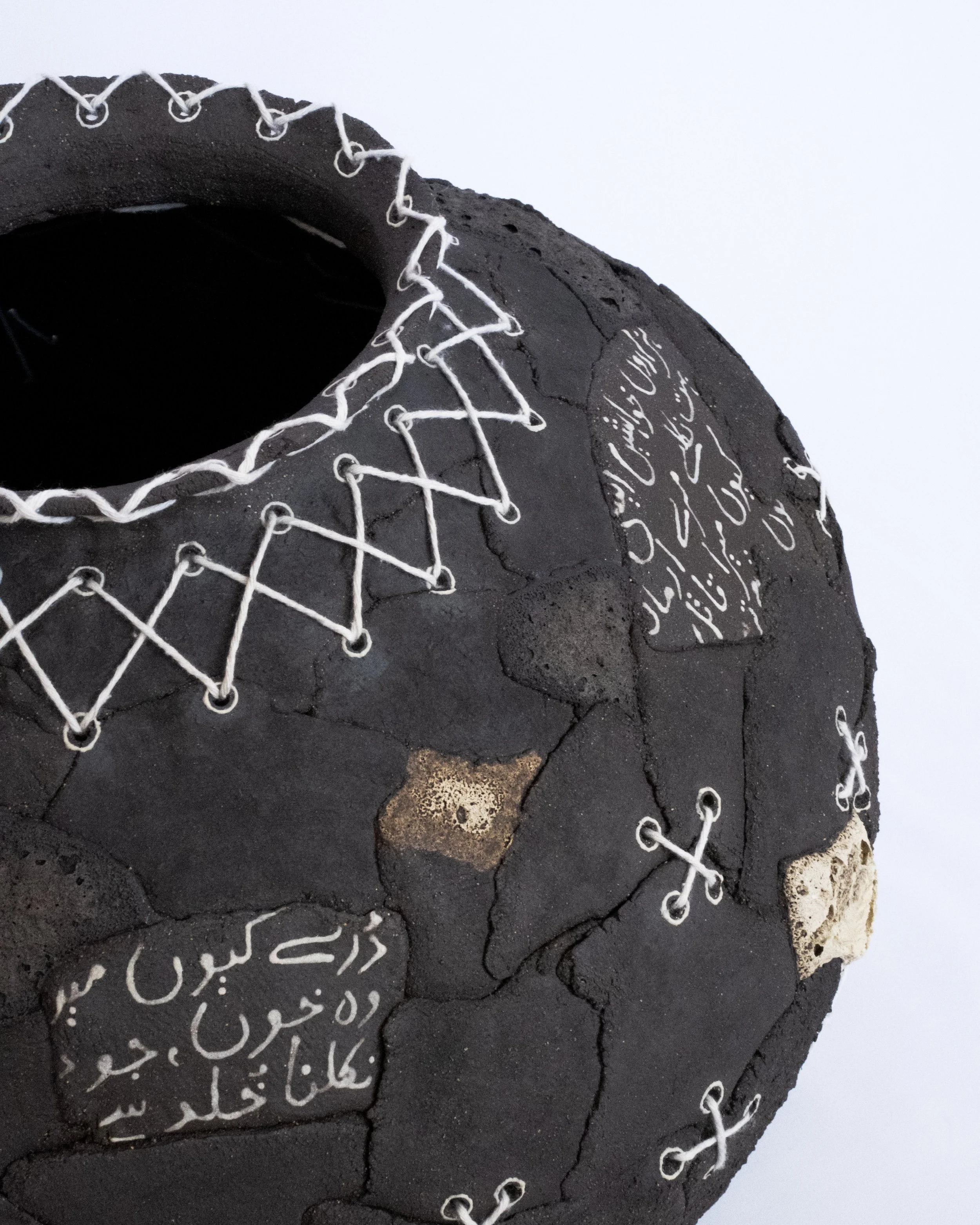Clay, Lava glaze and Cotton thread